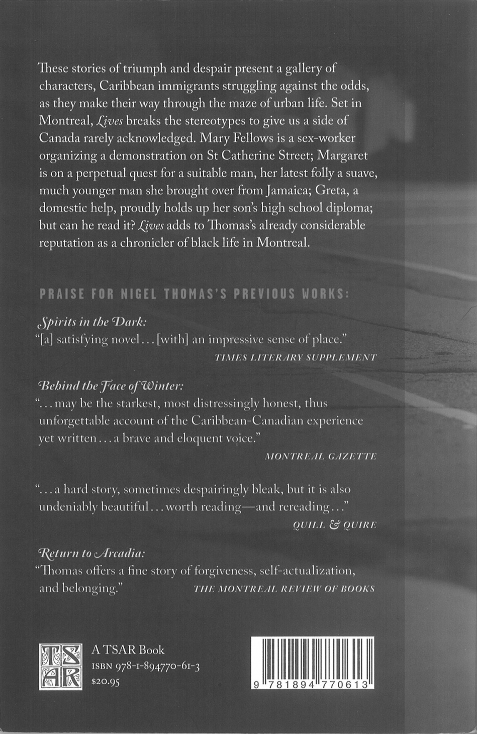 In his new collection of stories, Lives:Whole and Otherwise, H Nigel Thomas (author of Spirits in the Dark and Return to Arcadia) continues his exploration of the lives of Caribbean immigrants living in Montreal.